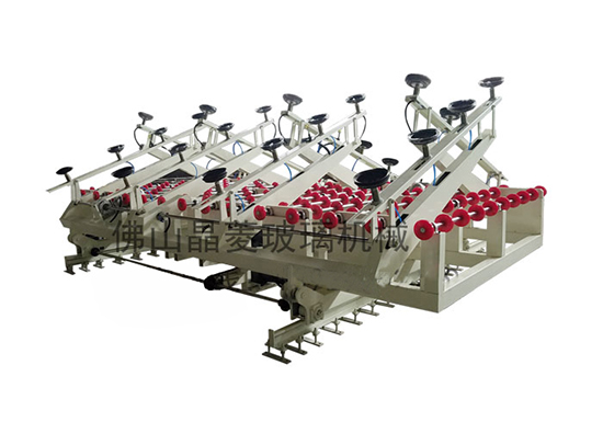 主要用於玻璃的自(zì)動取片。將(jiāng)玻璃放在指定位置,給出取片信號後,取(qǔ)片吸盤自動翻起並將(jiāng)玻璃吸附後放置在取(qǔ)片台傳送輥(gǔn)道上,自動將玻璃輸送到切割機主機上。